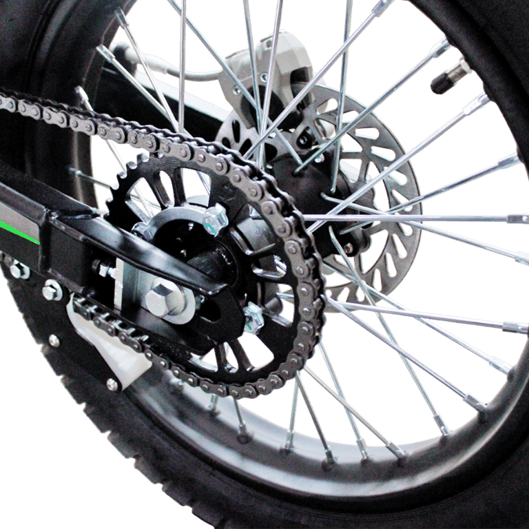 Su peso ligero de solo 98 kg la hace extremadamente maniobrable, mientras que los frenos de disco y las llantas específicas para off-road (70/100-19 y 90/100-16) brindan la tracción y seguridad necesarias en terrenos desafiantes.