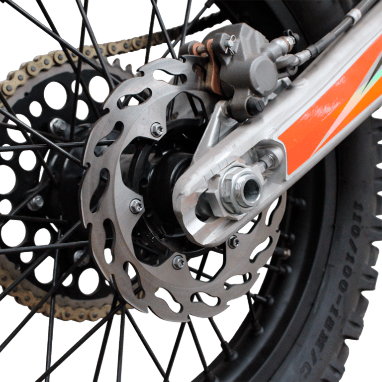 Su suspensión delantera de barra y trasera tipo monoshock ofrecen una excelente absorción de impactos, brindando estabilidad y comodidad en los terrenos más desafiantes. Los frenos de disco garantizan una frenada potente y segura.