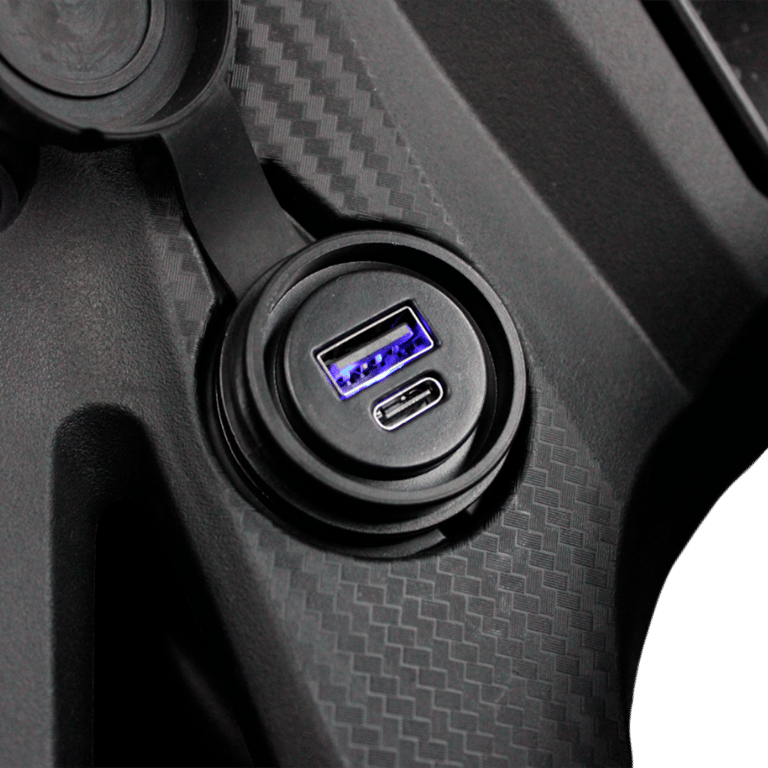 Incluye un tanque de combustible de 17 litros para mayor autonomía en recorridos largos, y una capacidad de carga de 150 kg.