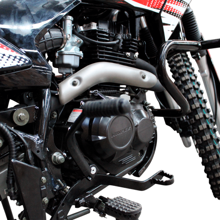 Cuenta con un sistema de arranque eléctrico y de pedal, que garantiza arranque seguro incluso en condiciones adversas, y una transmisión manual de 5 velocidades con encendido CDI, permitiendo un control preciso del motor en todo tipo de terreno.